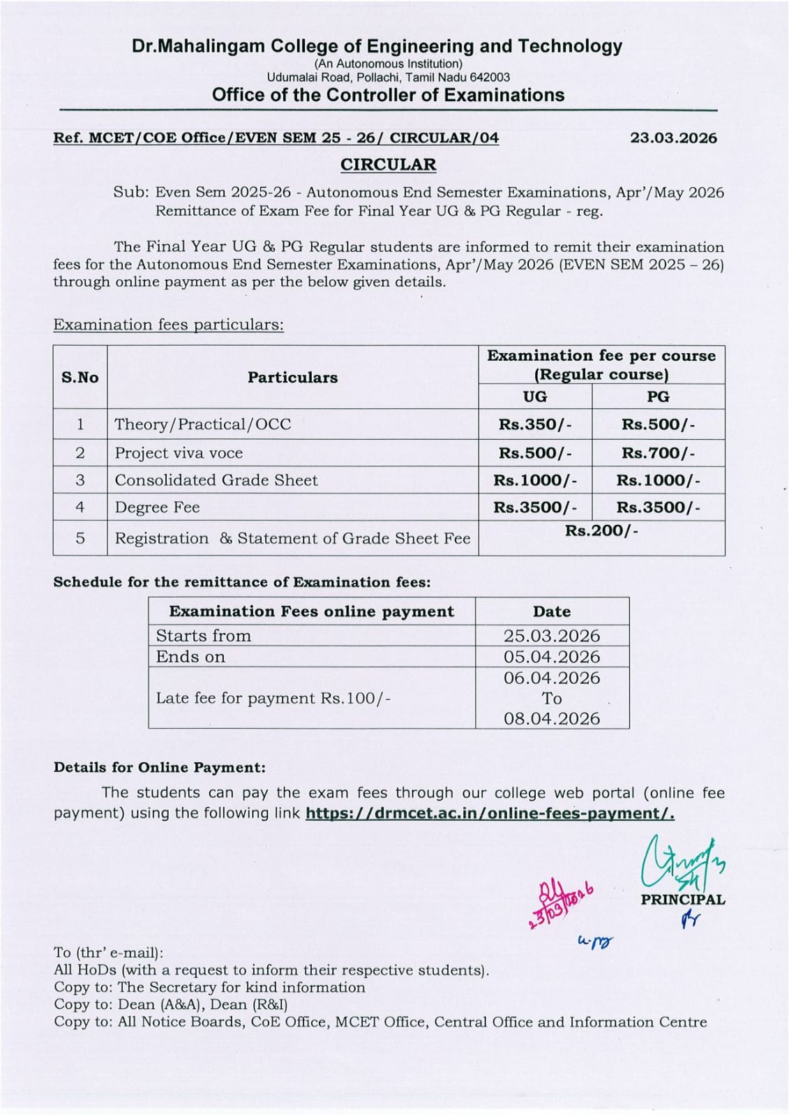 Apply for Dr. MCET's distinguished legacy of academic excellence and innovation! Our application process is streamlined to ensure a smooth experience for all prospective students. You can download our comprehensive admission brochure to explore the complete spectrum of our cutting-edge programs, campus facilities, campus life, and extensive industry relations. Our expert counselors are ready to address your concerns, clarify doubts, and help you navigate your journey in choosing the best engineering college admission, tailored for your aspirations. Shape your future at Tamil Nadu's top engineering college in Coimbatore, at Pollachi, where tradition meets innovation to create an unparalleled educational experience. Visit https://drmcet.ac.in/ today and take the first step toward a successful and fulfilling career in engineering and technology