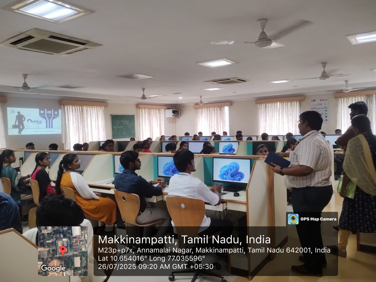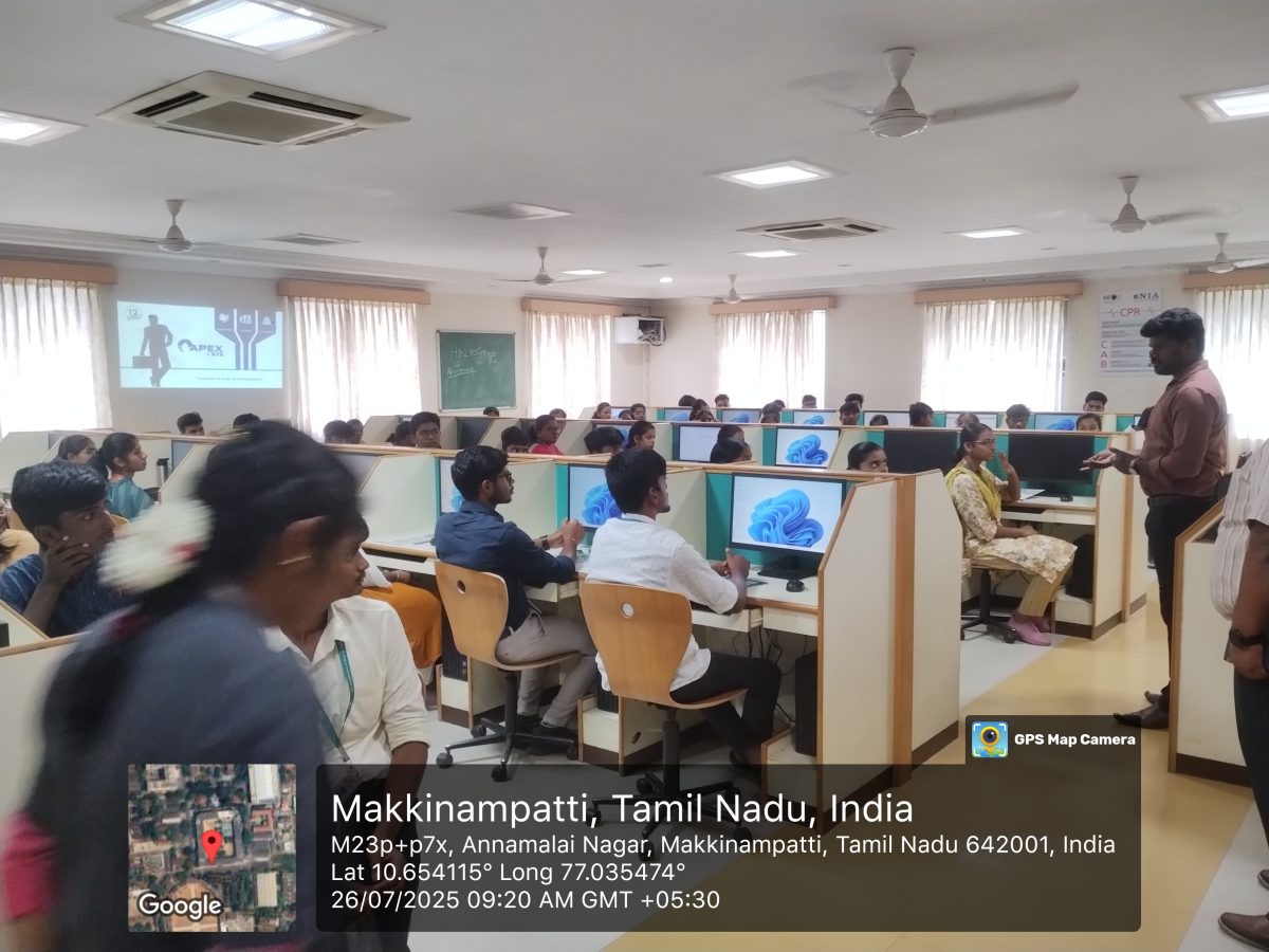 A One-Credit Course on “Mobile App Development using Flutter” was conducted over two Saturdays, combining hands-on training with industry insights. Experts from Apexisys Technologies, Coimbatore, inspired students on the theme “Evolution of Youth to Entrepreneurs.”