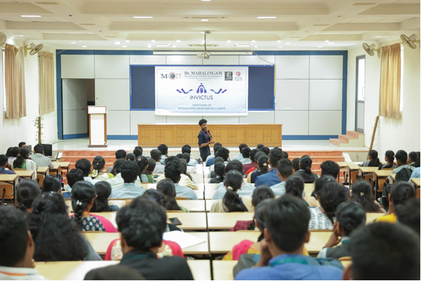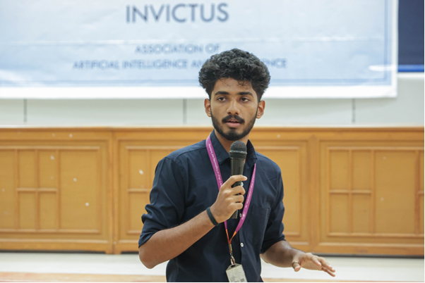 The Department of Artificial Intelligence and Data Science successfully organised the Valedictory Ceremony of INVICTUS, the department's vibrant student forum. The event will take place on Monday, 28th April 2025 at 2:00 PM, and will be graced by the presence of Mr. K. Boopathi Kumar, CEO and Founder of Training Train's, as the Chief Guest. This special occasion marks the culmination of a year of achievements, innovation, and student-led initiatives, celebrating the collective spirit and accomplishments of the INVICTUS team.