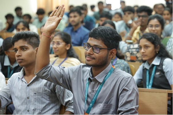 The Department of Artificial Intelligence and Data Science proudly organised HackVenture’25, a two-day hackathon held on 22nd and 23rd April 2025 at the Mechanical Seminar Hall. With the theme #Think Local, Hack Global, the event challenged participants to “hack the quad, crack the code, and level up” by diving into real-world problems with innovative tech solutions. The hackathon saw enthusiastic participation, fostering creativity, teamwork, and problem-solving among budding technologists. Guided by faculty coordinators Mr. M. Vijayakumar and Ms. M. Rajalakshmi, HackVenture’25 created an engaging platform for future innovators to showcase their talents and embrace the chaos of creation.