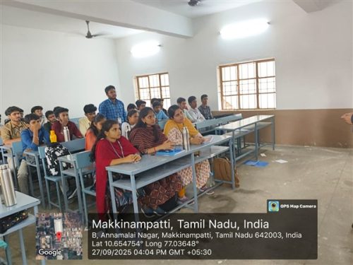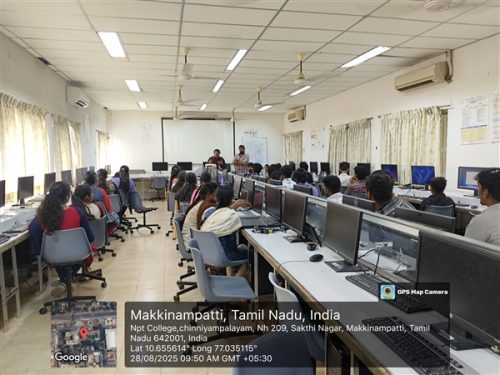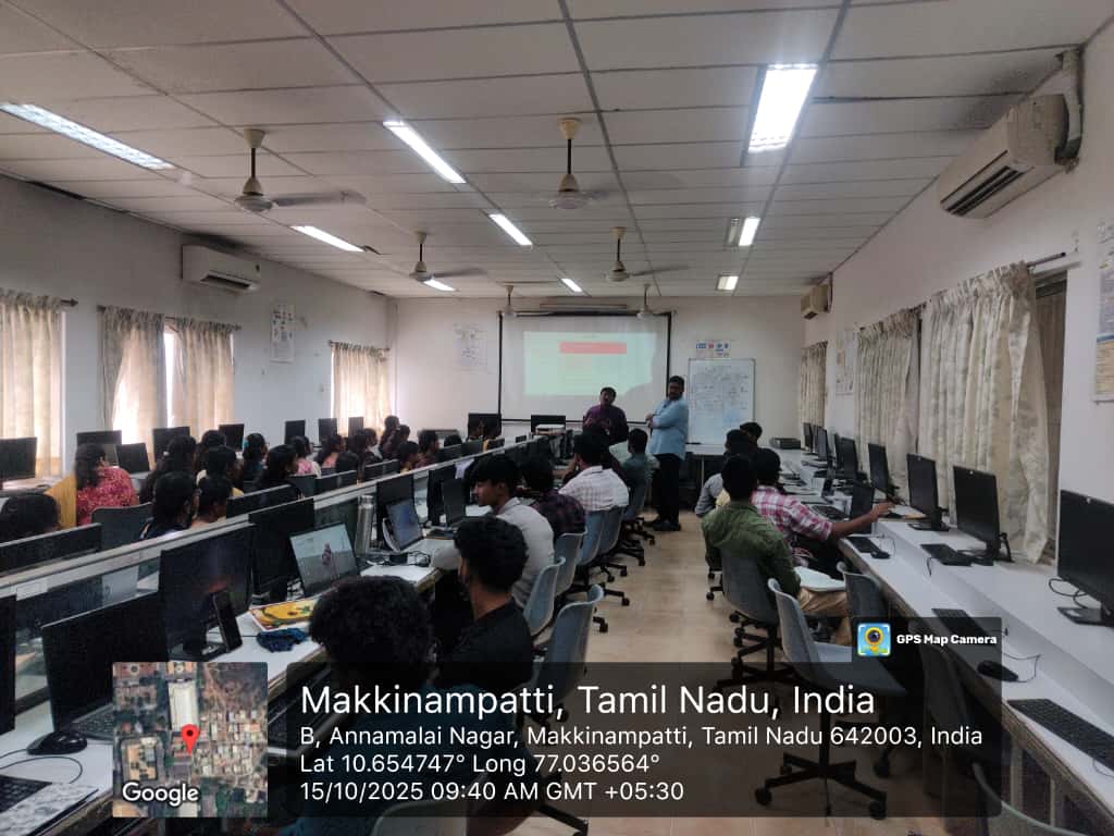 A one-day training session on “Full Stack Development (MERN)” was organized on 18.09.2025. The session was conducted by Mr. K. Rajasekar, Full Stack Technical Lead, Nschool Academy, Coimbatore.