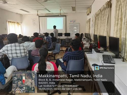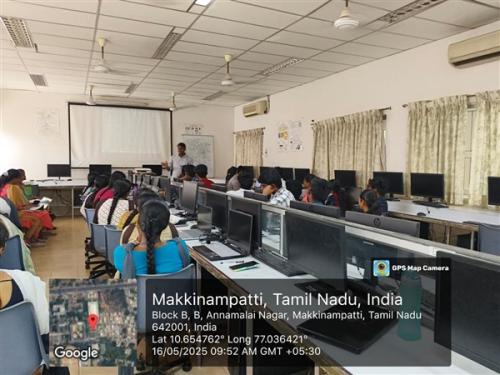 A one-day workshop on "Web Application Development Using Angular" was conducted on May 16, 2025. Mr. Peruyasamy, the resource person from DMeX Solutions Private Limited, Coimbatore