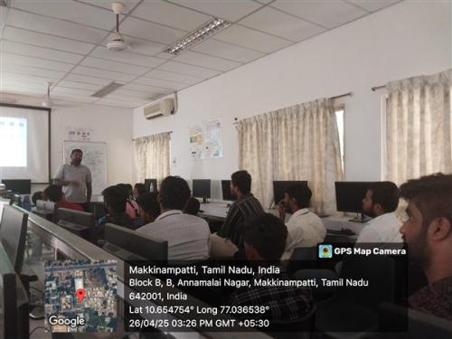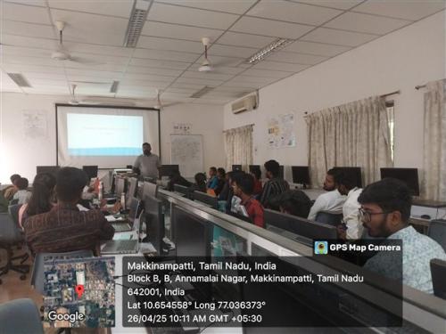 A one-day workshop on "Web Application Development Using Angular" was conducted on April 24, 2025. Mr. Peruyasamy, the resource person from DMeX Solutions Private Limited, Coimbatore