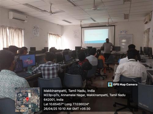 A one-day workshop on "Scalable Application Development For Cloud" was conducted on April 26, 2025. Mr. Vanaraj Chinnadurai, Software Engineer, Assistanz Networks, Coimbatore.