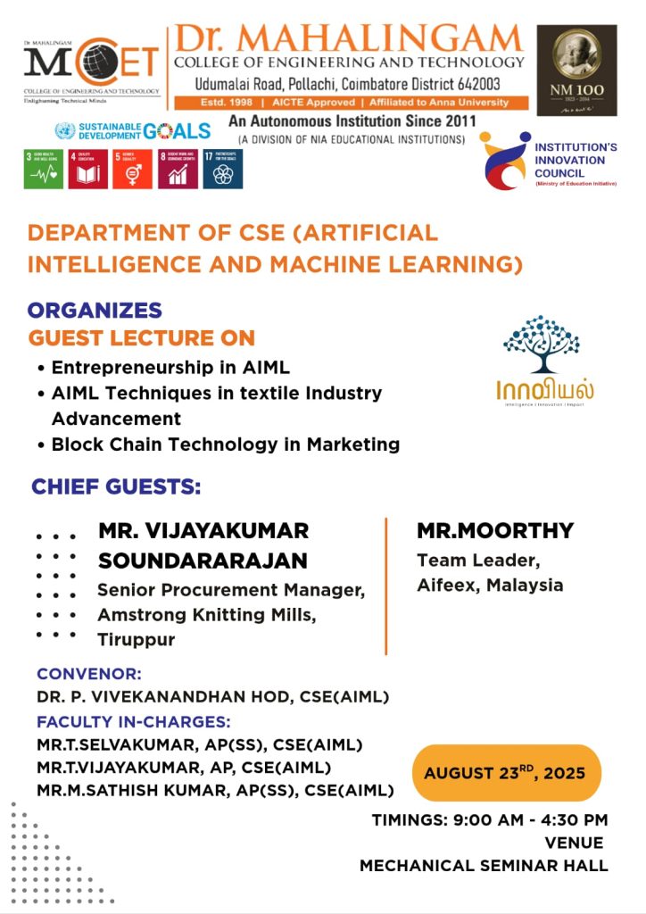 23.08.2025 - Guest Lecture on “Entrepreneurship in AIML