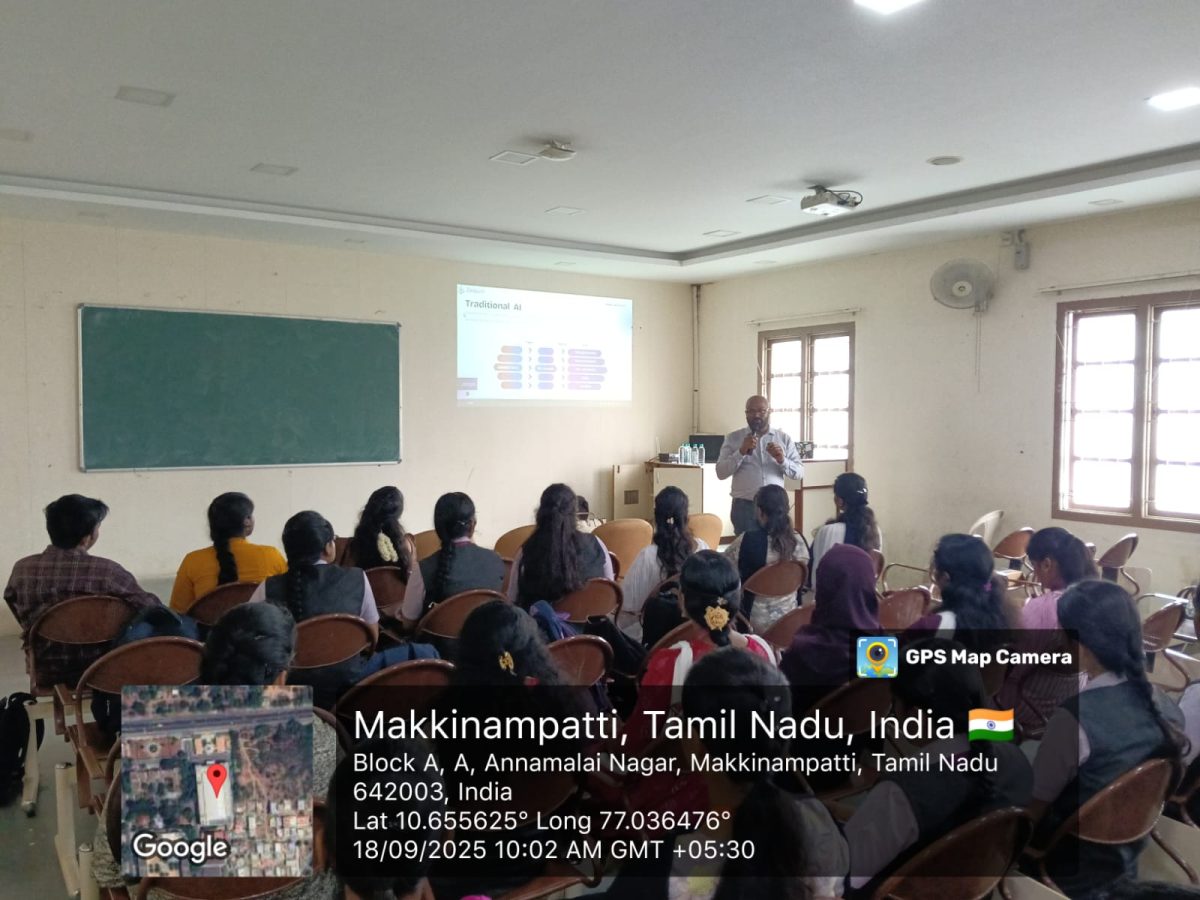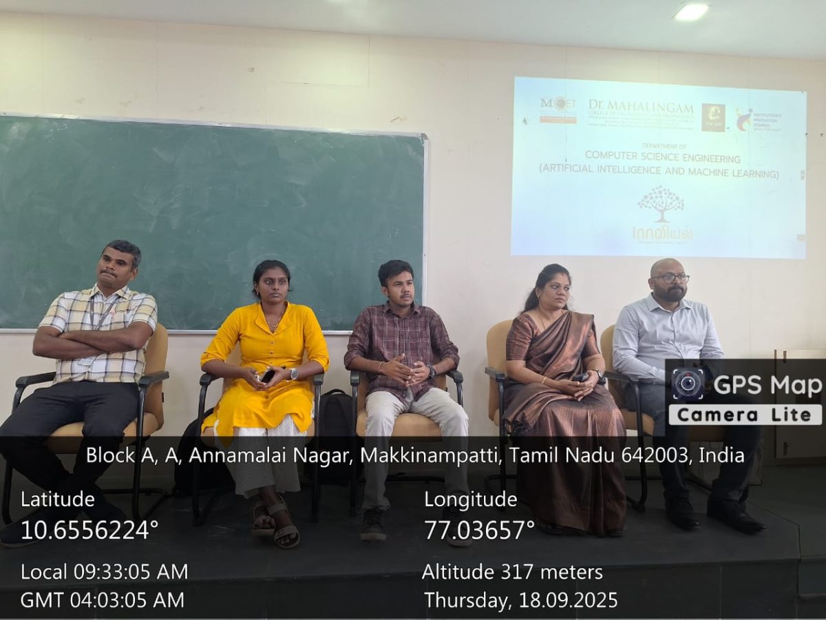 The Department of CSE (AIML), Dr. Mahalingam College of Engineering and Technology, organized a One-Day Workshop on “Spearheading AI Trends with Hands-on Workshop on Gen AI and AI Agents” on September 18, 2025. The session featured Mrs. Karthika Tamileselvan (Co-Founder & Head of Operations, Zequin) as the Guest of Honour, along with experts Mr. Rajasekar (AI Engineer) and Ms. Shesha Vardhini (Cloud Engineer) from Zequin, who shared valuable insights and hands-on training. Guided by the department faculty, the workshop equipped students with practical knowledge of Generative AI and AI Agents , making it an enriching and impactful experience.