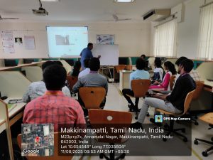 The Department of Computer Science and Engineering organized a Knowledge Sharing Session on “23CSL401—Python Programming Laboratory" from March 24 to March 25, 2025, with Mr.K.Boopathikumar, CEO of Training Trains Software Technologies, and Erode acting as resource persons.