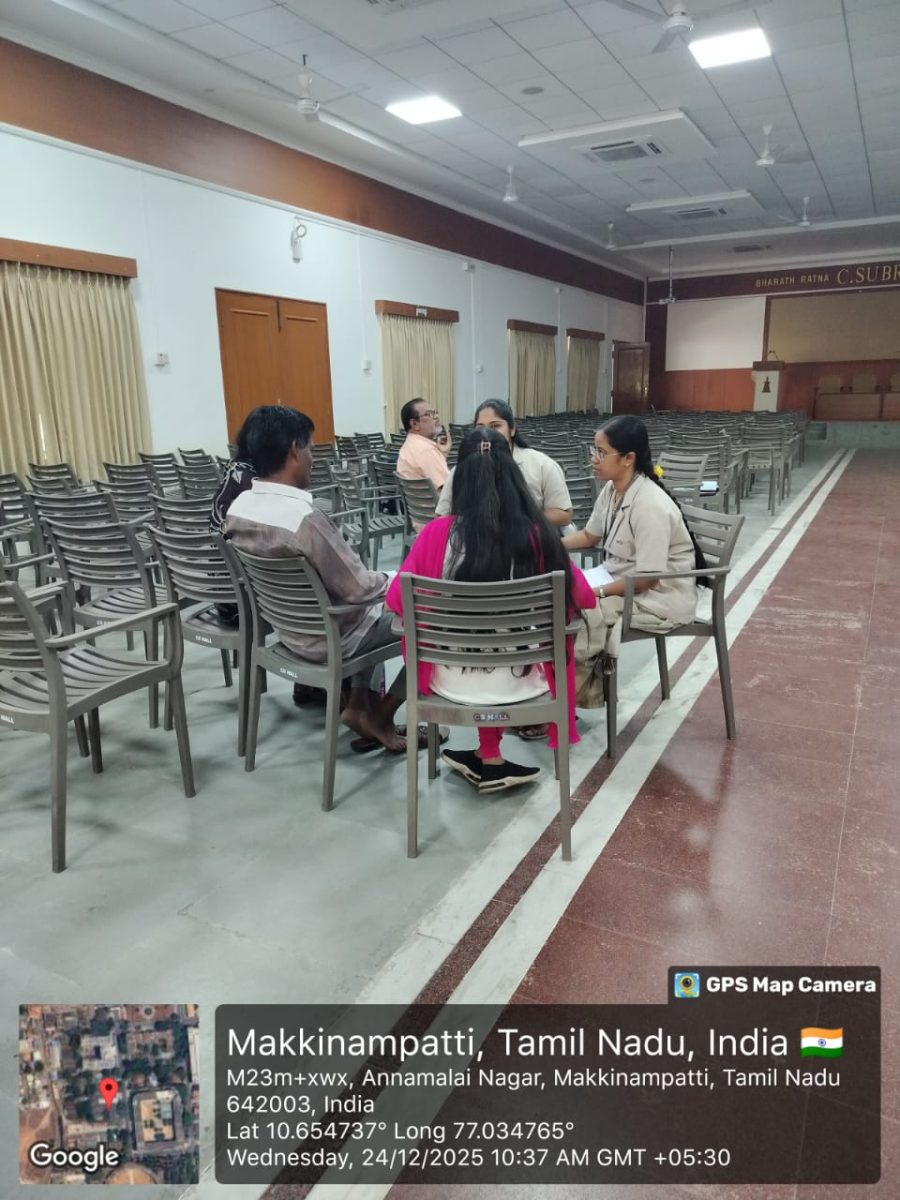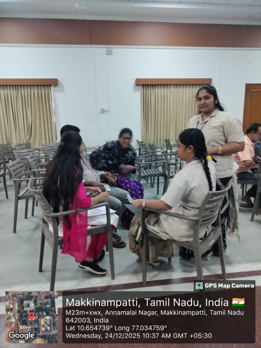 The Department of Computer Science and Engineering conducted the Parents Meeting – I for the IV CSE (VII Semester, AY: 2025–2026) on 09.07.2025, from 9:30 AM to 4:00 PM at the Mechanical Seminar Hall. The meeting was chaired by Dr. D. Sivaganesan, Head of the Department. The welcome address was delivered, and the agenda of the meeting was presented to the parents by Dr. A. Noble Mary Juliet, Programme Coordinator. The mentors of IV CSE were present, with a total of 25 participants.