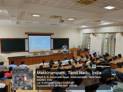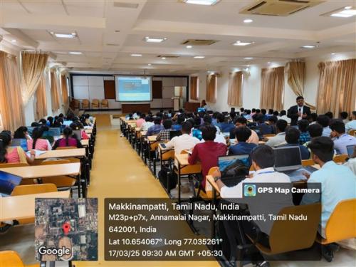 The Department of Computer Science and Engineering organized a Guest lecture titled " 5G Technologies and Multi Edge Computing" on 22.03.25, with Saravanakumar Mylsamy, Senior Software Engineer, Microsoft R&D IDC, Bengaluru acted as a resource person.