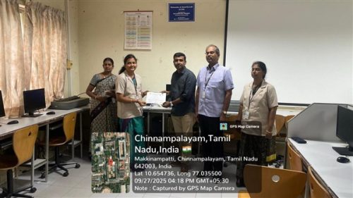 The Department of Computer Science and Engineering organized a Knowledge Sharing Session on “23CSL401—Python Programming Laboratory" from March 24 to March 25, 2025, with Mr.K.Boopathikumar, CEO of Training Trains Software Technologies, and Erode acting as resource persons.