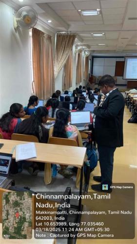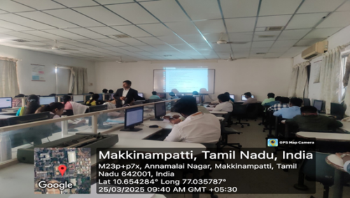 The Department of Computer Science and Engineering organized a Knowledge Sharing Session on "19CSCN1602-Machine iintelligence" from March 17, 2025 to March 18,2025 with Mr.K.Boopathikumar, CEO, Training Trains Software Technologies, Erode, acted as resource persons