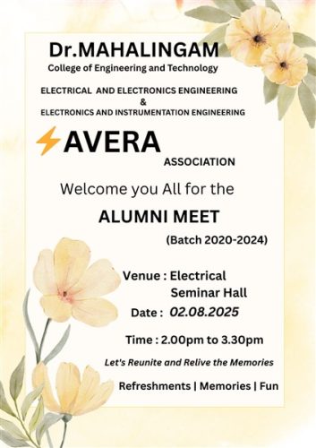 The AVERA technical association of the Department of Electrical and Electronics Engineering has organized an alumni reunion for the 2020-2024 batch students on 02.08.2025 at the EEE seminar hall.