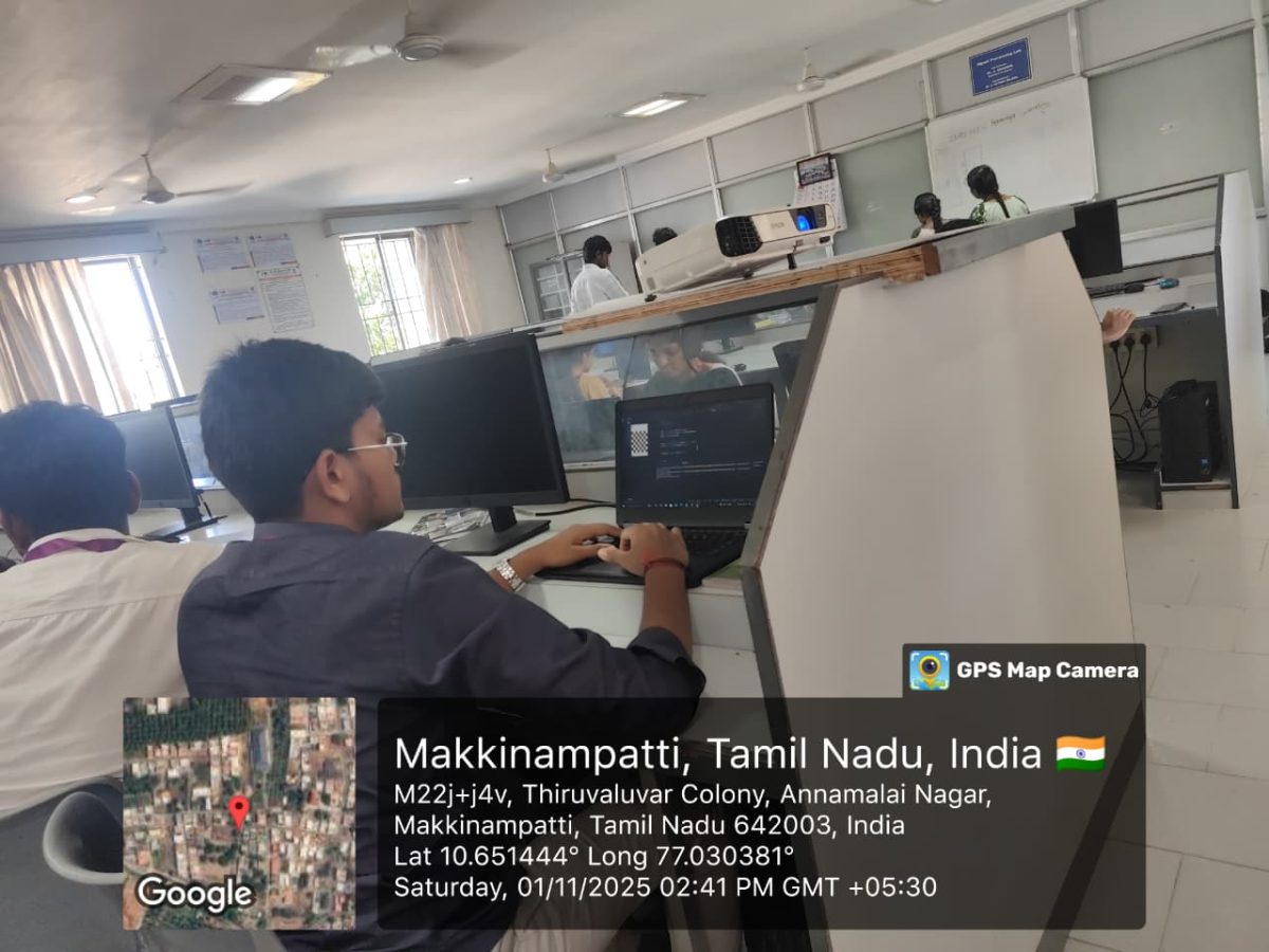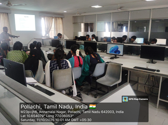 A one-credit course on “Artificial Intelligence and Computer Vision” was organized by the Department of Electronics and Communication Engineering for ECE and ACT students on 31.10.2025, 01.11.2025, 07.11.2025, and 08.11.2025. The sessions were conducted by Ms. Harini from Robomiracle, engaging a total of 38 participants. The course provided hands-on experience in Python programming, object recognition, YOLO, image segmentation, and various deep learning methods. Students explored real-time applications of AI and computer vision through interactive sessions and practical demonstrations. The program enhanced students’ technical skills and understanding of modern AI frameworks. It also encouraged innovation and research-oriented learning among participants. The course was organized and coordinated by Dr. C. Moorthy, AP (SG)/ECE, who ensured effective academic delivery and smooth execution of the event.