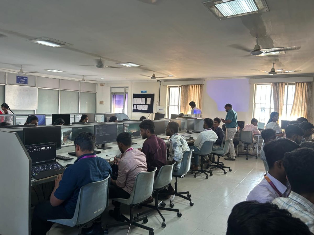 A One Credit Course on Semi-Custom IC Design using the CADENCE EDA Tool was conducted for II Year ECE and ACT students on 10–11 October 2025. The session was handled by Mr. Jay Kumar S. A., Clarozon Technologies, Coimbatore. As part of this hands-on training, students learned how digital hardware is described using Verilog, one of the most widely used Hardware Description Languages in the semiconductor industry. The course offered practical exposure to design, simulation, and verification using CADENCE tools, helping students gain real-time skills relevant to the VLSI domain.